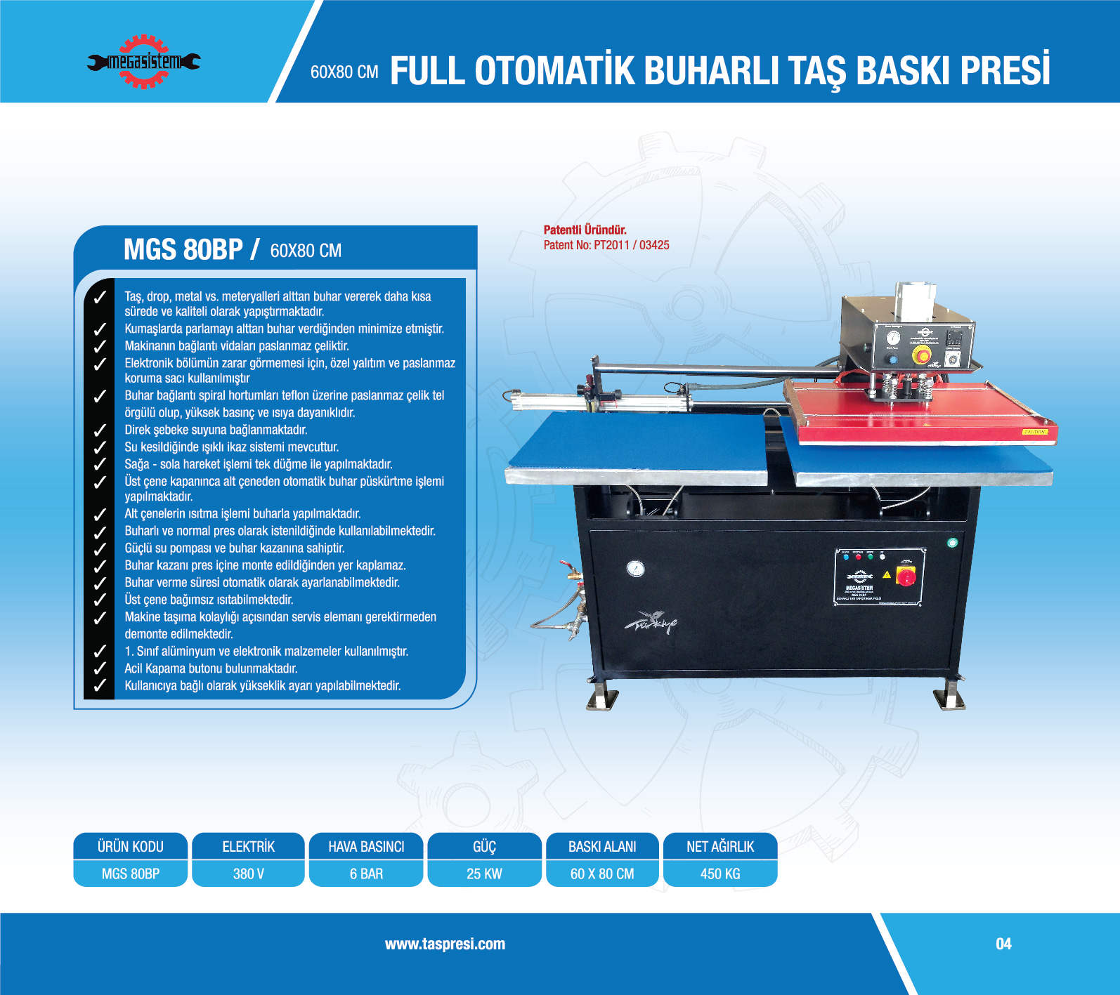 MGS 80BP – Full Otomatik Buharlı Taş Baskı Presi (60×80 cm)